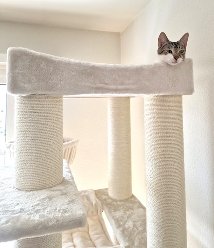 Er ist Kontrollturm, Fitnessgerät, Schlafstätte und Nagelstudio in einem: der Kratzbaum. Für Jasper und Joy gibt es keinen feudaleren Ort, ihre königliche Präsenz zu demonstrieren. Dabei haben sie ihn zu Beginn nur skeptisch beäugt. «Was soll dieses hässliche Kunstobjekt in unserer Residenz?!», sprach Jaspers Blick Bände, als wir das Gebilde aus Sisal aufbauten. Bis auch wir endlich schnallten, was das Problem war.