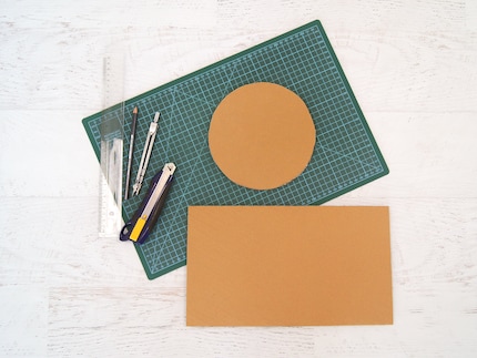 Schritt 1: Schneide aus einem Karton ein Rechteck und einen Kreis aus.