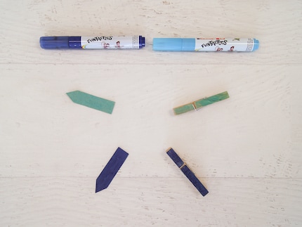 Schritt 5: Jedes Kind erhält eine passende Farbe und bemalt damit seinen Uhrzeiger sowie eine Wäscheklammer.
