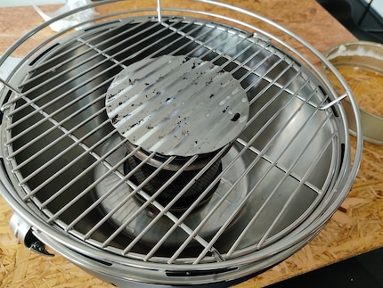 Auch das Einfüllen der Holzkohle und des Grillanzünders sind denkbar einfach. Übertreib es aber nicht. Ich habe natürlich beim ersten Versuch zu viel Kohle in den Holzkohlebehälter gefüllt und musste nachträglich noch zwei Kohlestücke herausnehmen. Laut Hersteller fasst der Behälter maximal 250 Gramm. Das dürften so sechs bis acht Holzkohlebriketts sein. Innerhalb von wenigen Minuten war der Grill einsatzbereit und wir konnten loslegen.