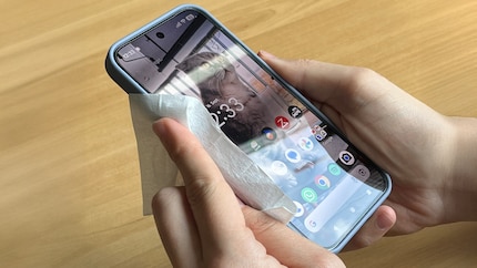 Die Hülle befreie ich zuerst gründlich von Staub und Fett. Brillenputztücher oder ein weiches Mikrofasertuch und etwas Brillen- oder Bildschirmreiniger reichen vollkommen aus.