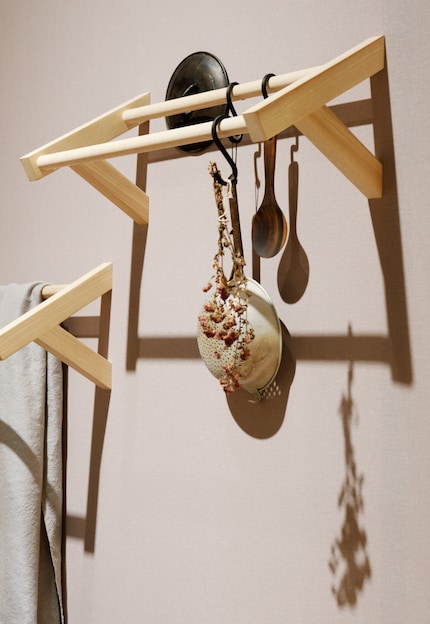 Stell dir vor, dein Zuhause wird zur Galerie, in der Kunst und Alltag verschmelzen und Alltagsgegenstände zu Kunstwerken werden. Genau da kommt die «Foldworks»-Reihe von Studio Berg ins Spiel. Die vielseitigen Wandobjekte können als Wäscheständer, Handtuchhalter oder sogar als Zeitschriftenablage dienen. Sie werden in Polen aus pulverbeschichtetem Stahl handgefertigt und sind über den Studio-Berg-Shop in vielen Farben und in Messing zu haben.
