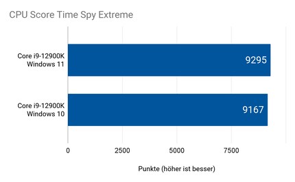 Nur knapp ein halbes Prozent schneller ist der 12900K in Windows 11 gegenüber Windows 10 über alle Benchmarks hinweg. Ein verschwindend geringer Unterschied. In Games solltest du also nichts merken? Doch, denn synthetische Benchmarks sagen nicht die ganze Wahrheit. Ihre Ergebnisse können sogar irreführend sein.