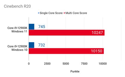 In vielen Benchmarks ist der Unterschied zwischen Windows 11 und Windows 10 nicht sonderlich gross. Es gibt aber doch ein paar Anwendungen und auch Games, die vom Thread Director und Windows 11 profitieren. Ich kann mir vorstellen, dass dieser Unterschied mit fortschreitendem Technologie-Alter noch grösser wird.