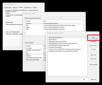Nun siehst du alle bereits vorhandenen Ordner, die dem Windows-Systempfad angehören. Klicke auf «Neu».