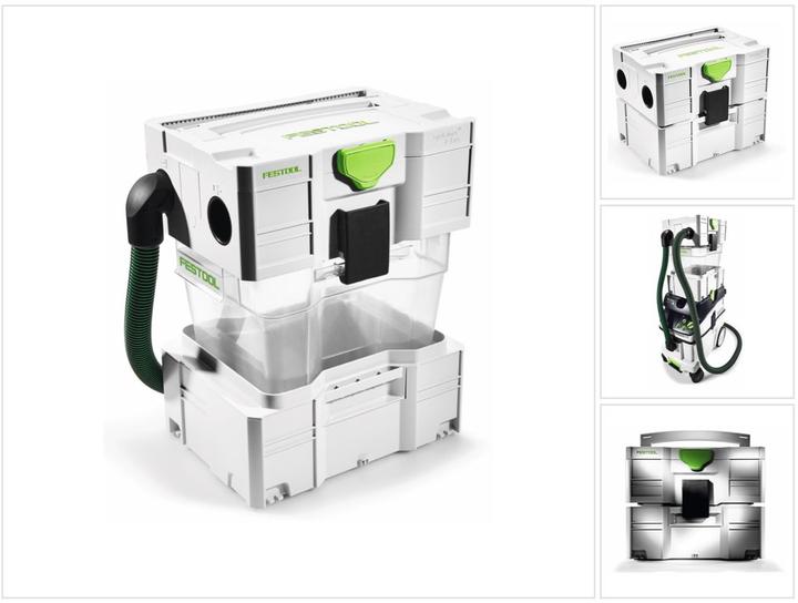 Bewältigt hohes Staubaufkommen dank Zyklon-Technologie. Konstant hohe Absaugleistung durch Entlastung des Hauptfilters. Bequemer und sicherer Transport dank stapelbarer Auffangbehälter mit kompakten Abmessungen und robuster Bauweise. Flexibel je nach Anwendung mit oder ohne CT Vorabscheider arbeiten. Grosse Staubmengen und Späne stellen ab sofort kein Problem mehr dar. Weder für den Hauptfilter noch für die Saugkraft. Denn der mit den Festool CT Absaugmobilen kompatible Vorabscheider fängt bis zu 95 % des Staubs auf, bevor er das Absaugmobil erreicht. Das entlastet den Hauptfilter und garantiert konstant hohe Saugkraft während des gesamten Arbeitsprozesses. Zyklon-Systainer, Auffangbehälter VAB-20, Systainer-Wanne, Anschluss-Schlauch, Entsorgungssack, Behälterdeckel.