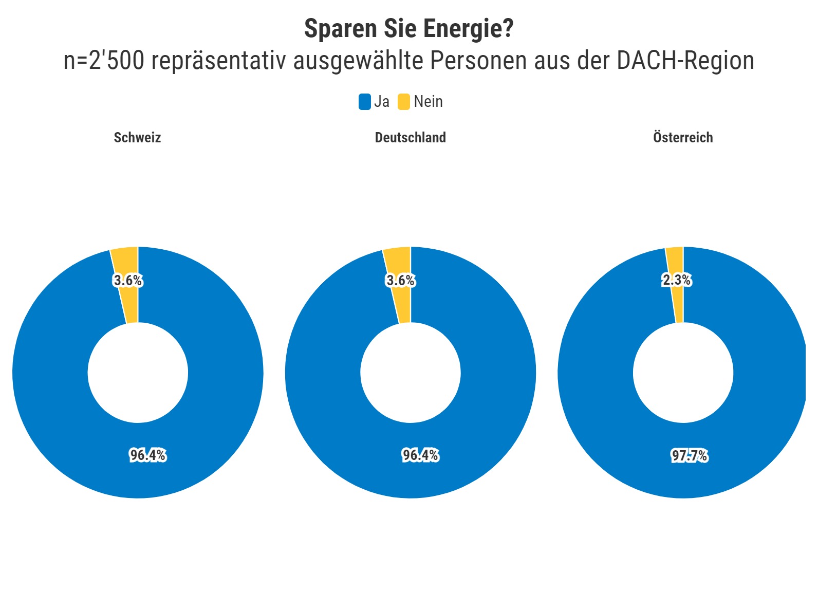 . What ways do we use to save energy? Most respondents say they turn off the lights when they are no longer needed. This is followed by "turning down the heating", "taking a shower instead of a bath", "cooking with a lid on" and turning off appliances completely (switching off stand-by). Every third German also drives less / takes the train more. But this proportion is only half as large as the proportion of respondents who heat and light more consciously. . The situation is different in Austria, for example: The proportion of those who use the car less often is larger in the Alpine republic than in this country, and turning off the lights and cooking more consciously is also implemented significantly more often. However, Austrians turn down the heating somewhat less often than Germans. Germany's greater dependence on Russian gas could play a role. The fact that Austria has a more modern energy infrastructure was ranked by Galaxus in August. You can access all GfK results from Austria and Switzerland at galaxus.at and galaxus.ch. .