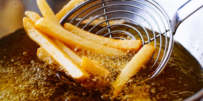 Even in the home kitchen, make sure you only use suitable oils, such as refined, heat-stable vegetable oils like corn oil, sunflower oil, peanut oil, soya oil and rapeseed oil. Lard, coconut oil and ghee, i.e. clarified butter, are also good for high heat. Important: Do not reuse the fat or oil too often and do not heat it too high. This is because cooking, frying and deep-frying change the molecular structures of the fat. Vegetable oils with a high content of unsaturated fatty acids can be converted into trans fatty acids at temperatures as low as 130 degrees.