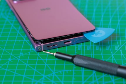 There’s a Torx screw (T4) on the bottom edge of the Skyline. If you rotate it about a quarter, you can lift the back of the phone. You’ll then be able to slip a pick into the gap and pry off the back entirely. Once you’ve done that, you’ll have access to the battery (which isn’t glued down) and be able to unscrew other T4 screws to replace the USB-C port or display. The smartphone doesn’t get by entirely without plug connectors, so I’d recommend you read the relevant repair manual carefully.