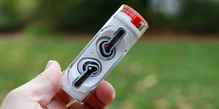 Featuring transparent plastic, a white interior and red accents on the side, Nothing is continuing the design previously seen on the Ear (1) and Phone (1). The white interior is exposed on one side of the case. It’s slightly rough and quite tactile, unlike the smooth transparent plastic. I could fiddle with it for hours – opening and closing it over and over again.