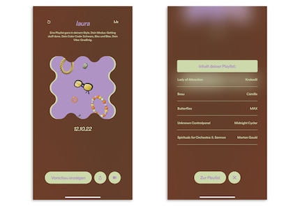 A pair of sunglasses and other accessories fly across my smartphone screen in a purple bubble. My personal playlist, which matches my style exactly, is now complete. «Getting stuff done». Here we go. My «colour code»: black, blue, blue. What happened to the green and purple? It doesn’t matter. It’s really exciting. I start the playlist. And I’m a bit clueless. I know exactly three of the 30 curated artists. None of the songs even come close to my taste or algorithm. Does any of this sound crisp, black, or blue? I haven’t got the faintest idea.
