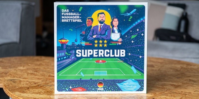 Between quartets, Tipp-Kick and Subbuteo, many attempts have been made to bring football to the living room table. The board game Superclub’s having another shot at it. With the basic game, two to four people aged twelve and over can manage the fortunes of a fictitious club and compete for championships. The first team to earn 100 points or win the Supercup wins. Getting a team line-up right is just as important as expanding training facilities and infrastructure and maintaining your scouting network.