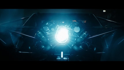 An engine needs two exhaust pipes. They release the pressure created by the explosion in the cylinders is released. And obviously also the fumes. Therefore, the rear engine must have large exhaust pipes and a mysterious jet engine, which is part of the V8 engine featured in the movie. Before the first big car chase, there are scenes of Batman analysing clues in his Batcave. In the background: the motor with the jet engine, which is later installed in the back of the Batmobile along with two turbochargers.