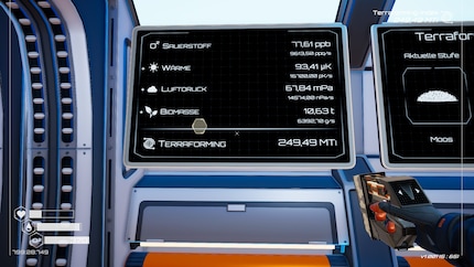 I start my ambitious terraforming project with the most important thing: staying alive. Your character can die from a lack of oxygen, hunger or thirst. With this in mind, I grab my multifunctional tool and use it to collect resources such as iron, silicon and titanium, which are lying all over the ground. This can be used to build modular accommodation from containers. Inside these containers, there’s unlimited oxygen and space for storage boxes and equipment.