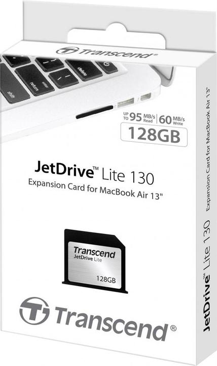 The JetDrive Lite 130 is an expansion card designed specifically for MacBook Air 13 inch (end of 2010 - beginning of 2015). The design of the card adapts perfectly to the shape of your MacBook. It provides extra storage and is so small that it doesn't add weight to your MacBook.