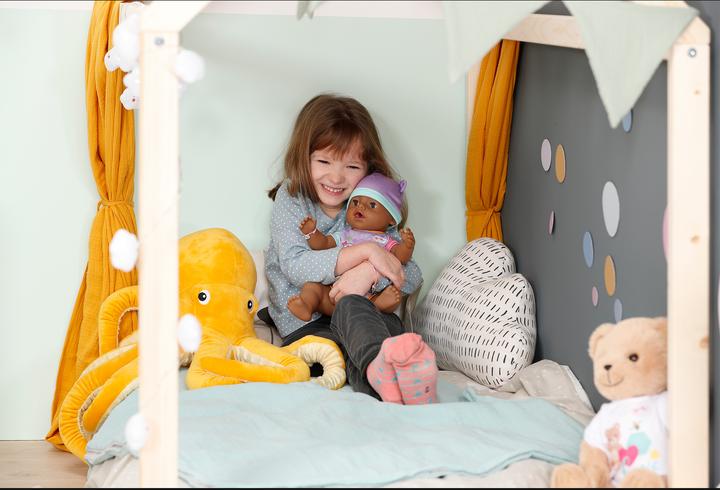 Here comes Eva. Already known from the Baby born animation series, which can be seen on YouTube and Toggo, Eva is now also available in her new outfit and with 10 accessories for you at home.