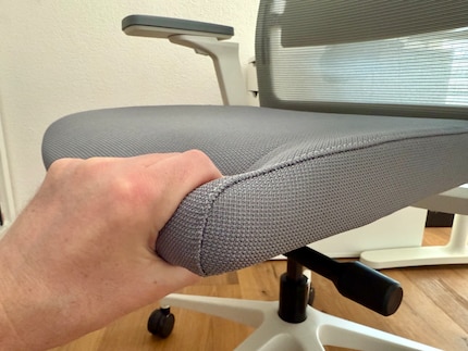 Le soutien lombaire intégré au dossier est réglable en hauteur et évite la formation d’un dos creux tant redoutée par les orthopédistes. Le soutien donne de l’appui sans que je le remarque activement. Cela ne va pas de soi. Sur le modèle Indeed de Dauphin (lisez mon rapport de test ), la construction est moins réussie, car on ressent la molette de réglage au niveau de la colonne vertébrale, ce qui est désagréable.