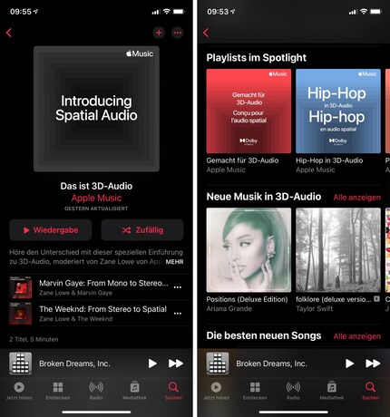 Die beiden Music Features Spatial Audio und Lossless Streaming sind seit Apples WWDC 2021 verfügbar und werden derzeit ausgerollt. Erste Tracks sind bereits für einige User in Apple Music verfügbar. Für Filme gibt’s Spatial Audio übrigens schon länger.