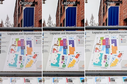 Je préfère le mode « vif » que je souhaiterais tester sous la lumière du soleil. Seulement, le ciel hivernal de Hambourg n’a pas pas grand-chose d’autre que des nuages gris à me proposer.