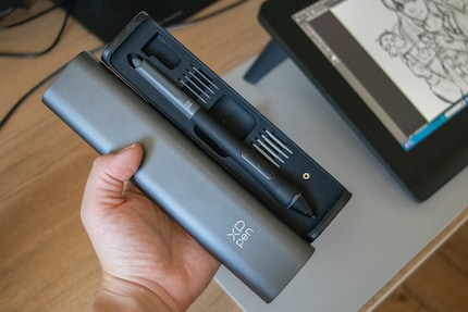 De accessoires zijn behoorlijk uitgebreid. Je krijgt een stylus met een X3 Pro Smart Chip voor je tablet. Deze kan 16.000 drukniveaus detecteren en hoewel hij vrij breed is, voelt hij prettig aan. Naast de gewone tips krijg je een tweede type dat lijkt op een vezelpen - vier van elk.