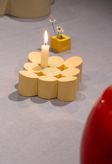 Botergeel is subtiel, maar toch opvallend. Het beste voorbeeld: de «Churro» kruk uit de «Form Follows Intuition» collectie van Roosa Ryhänen. Met zijn zachte, bijna levendige vormen doet hij denken aan een klein, vriendelijk wezen. En hoewel het geïnspireerd is op gefrituurd gebak, zorgt de botergele kleur voor de glow-up.