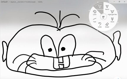Om te testen download ik de app "Sketch Board" uit de Microsoft Store en installeer die op mijn mobiele computer. Ik kan al snel beginnen met krabbelen. Vanuit mijn gezichtspunt werkt het best goed, ware het niet dat ik vertraging heb.