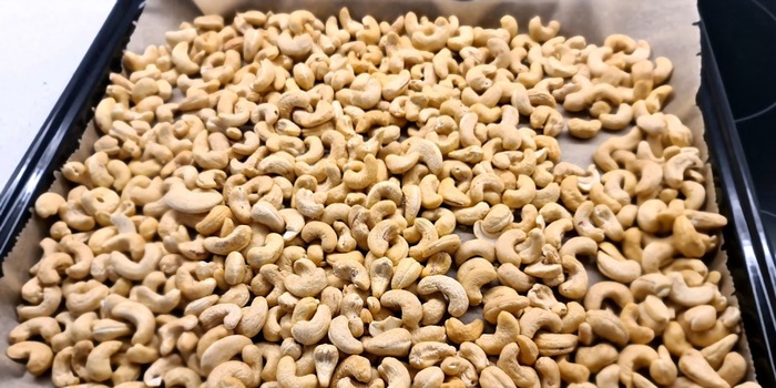 Ik gebruik grote cashewnoten en rooster meestal een kilo per keer.