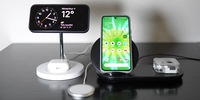 Net als Belkin heeft Anker ook powerbanks in de sale die je ook als standaard kunt gebruiken. En er zijn twee varianten: Het MagGo Wireless Charging Station heeft een kleine standaard, terwijl de MagGo Power Bank scharnierend is en onder verschillende hoeken kan worden neergezet. Het Anker MagGo 3-in-1 Oplaadstation is ook ontworpen voor op reis en is daarom opvouwbaar. Hier heb je drie oplaadvlakken, één is ontworpen voor de Apple Watch en deze kan ook worden uitgeklapt.