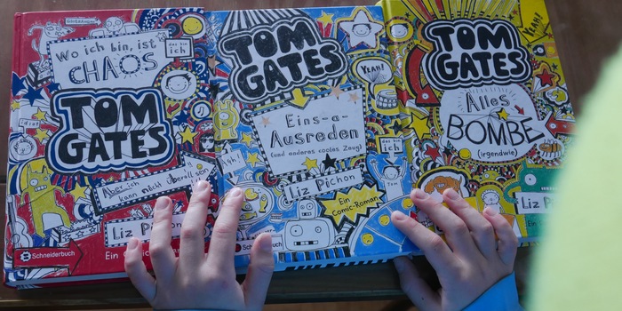 Mijn zoon vindt Tom Gates, een serie geschreven door de Britse auteur Liz Pichon, leuker dan het origineel. Ook in dagboekvorm en geïllustreerd met veel tekeningen, stonden verschillende delen op zijn verlanglijstje. Sterker nog, hij kon haast niet wachten om ze te lezen met een ongewoon doorzettingsvermogen. Op de vraag wat er spannender was aan Tom Gates dan Gregs dagboek, noemt hij een heleboel redenen: