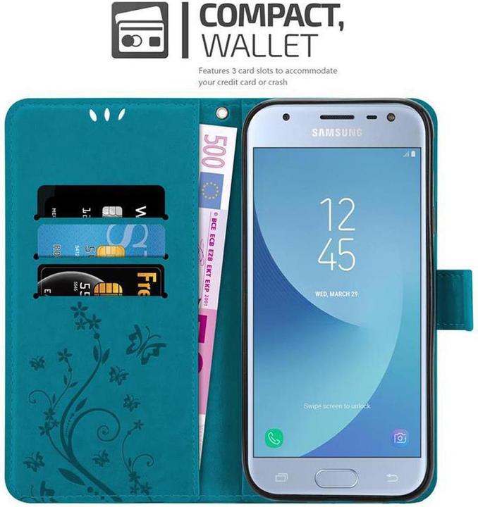 Galaxy J3 2017 telefoonhoes in bloemenontwerp met magnetische sluiting, standaardfunctie en 3 kaartsleuven